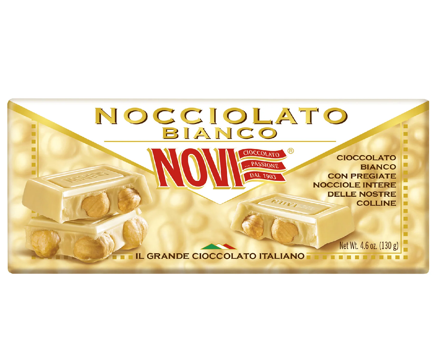 A Novi fehércsokoládé törökmogyoróval egy különleges édesség, mely magában hordozza a fehércsokoládé és a ropogós törökmogyoró harmonikus ízvilágát.