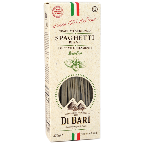 A Di Bari bazsalikomos spagetti tészta kitűnő választás spaghetti al pesto, basilico alla genovese vagy aglio e olio elkészítéséhez.