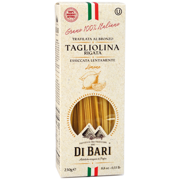 Az Di Bari citromos tagliolina tészta frissességgel és intenzitással örvendezteti meg az ízlelőbimbókat. Az illatos citrom és a selymes tészta tökéletes harmóniát alkotnak.