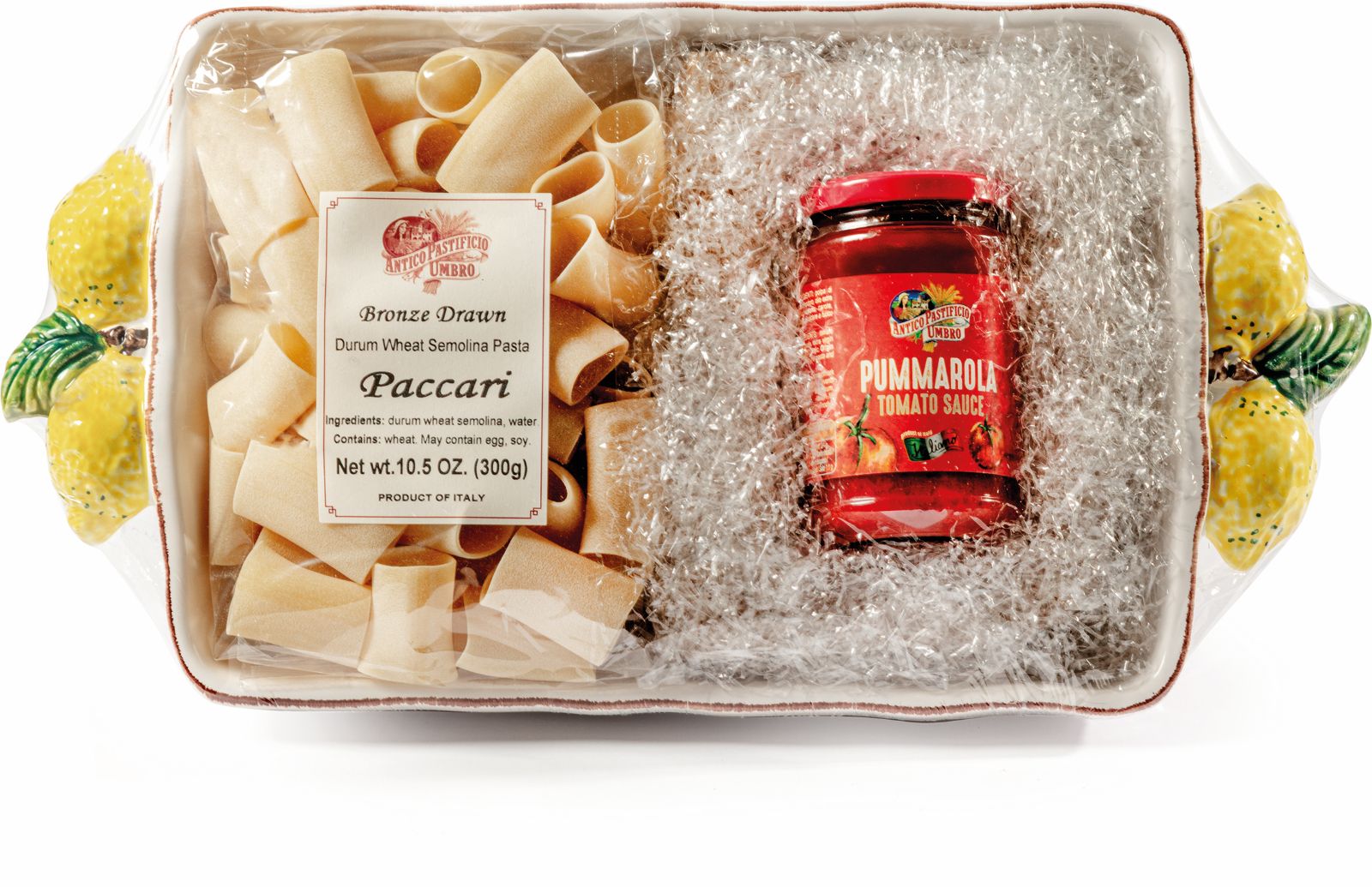 tészta (300g) (durumbúza dara, Nyomokban tartalmazhat (tojás, szója, mustár, tintahal tinta)), paradicsomszósz (280g) (paradicsom pép (83,4%), duplán sűrített paradicsom, extra szűz olívaolaj, cukor, só , hagyma , zeller, sárgarépa , bazsalikom, fokhagyma)