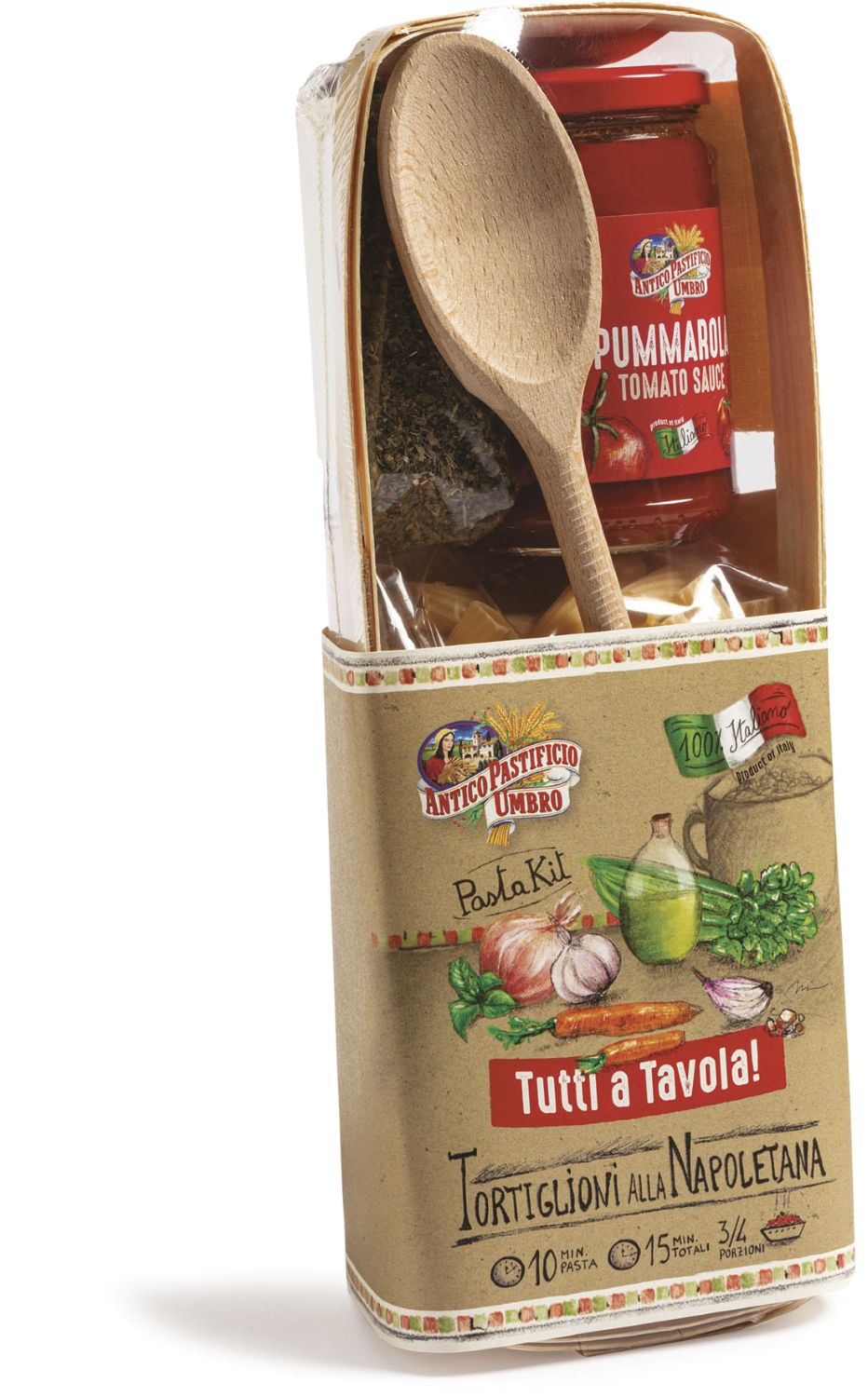 A Ajándékcsomag Umbro Tortiglioni all'Napoletana kosárban konyharuhával kiváló választás az olasz konyha szerelmeseinek, egyedi ízekkel és minőségi alapanyagokkal.