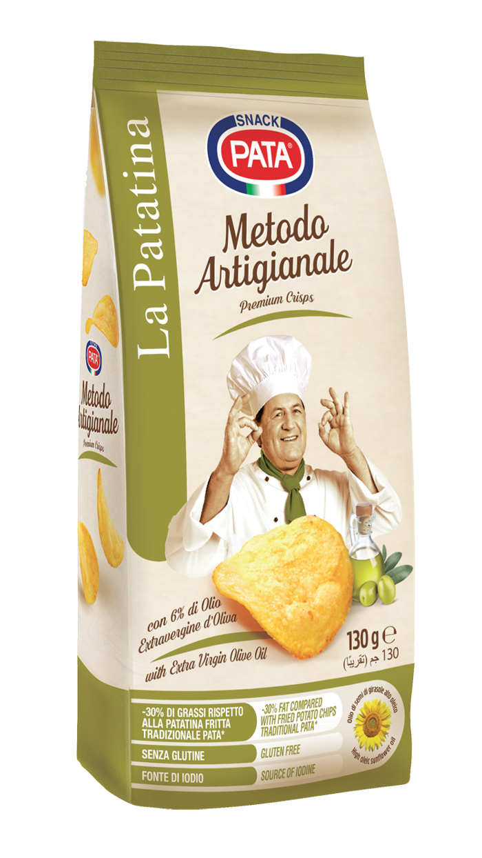 Kiváló minőségű kézműves módszerrel előállított burgonyachips 6% extra szűz olívaolaj hozzáadásával. Egy termék, amelyet szívesen tálalsz fel és kínálsz körbe.