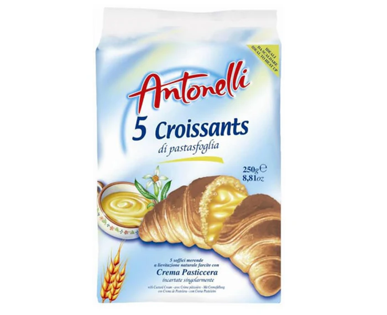 Az "Antonelli vaniliakrémes croissant" egy ízletes croissant, melyben a vaníliakrém és a puha tészta tökéletes harmóniát alkotnak.