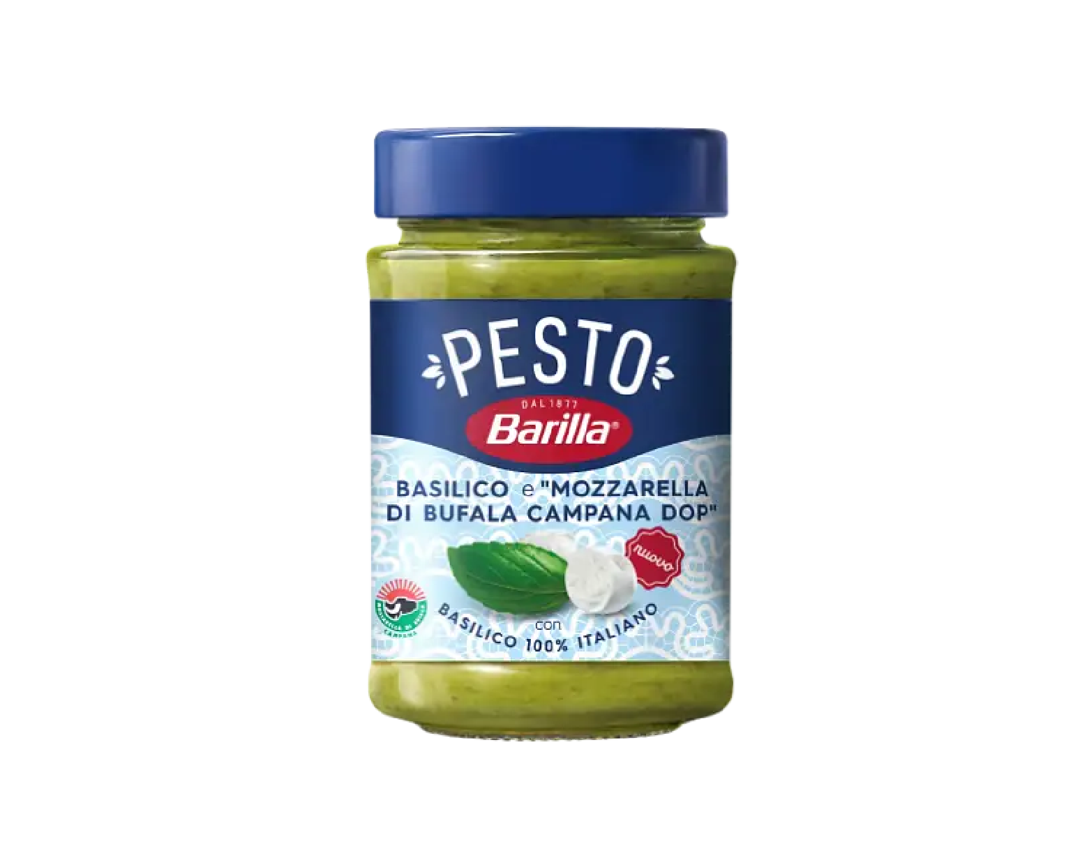 A Barilla bazsalikom-bivaly mozzarella pesto egy ízletes olasz pesto szósz, amely friss bazsalikommal és krémes bivaly mozzarellával készül.