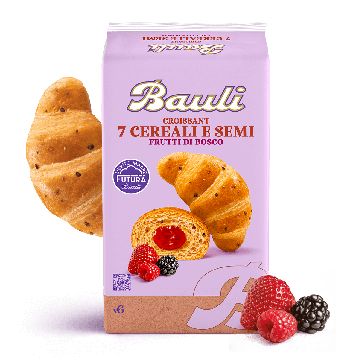 A Bauli 5 gabonás erdei gyümölcsös croissant egy ízletes és egészséges választás reggelire vagy uzsonnára.