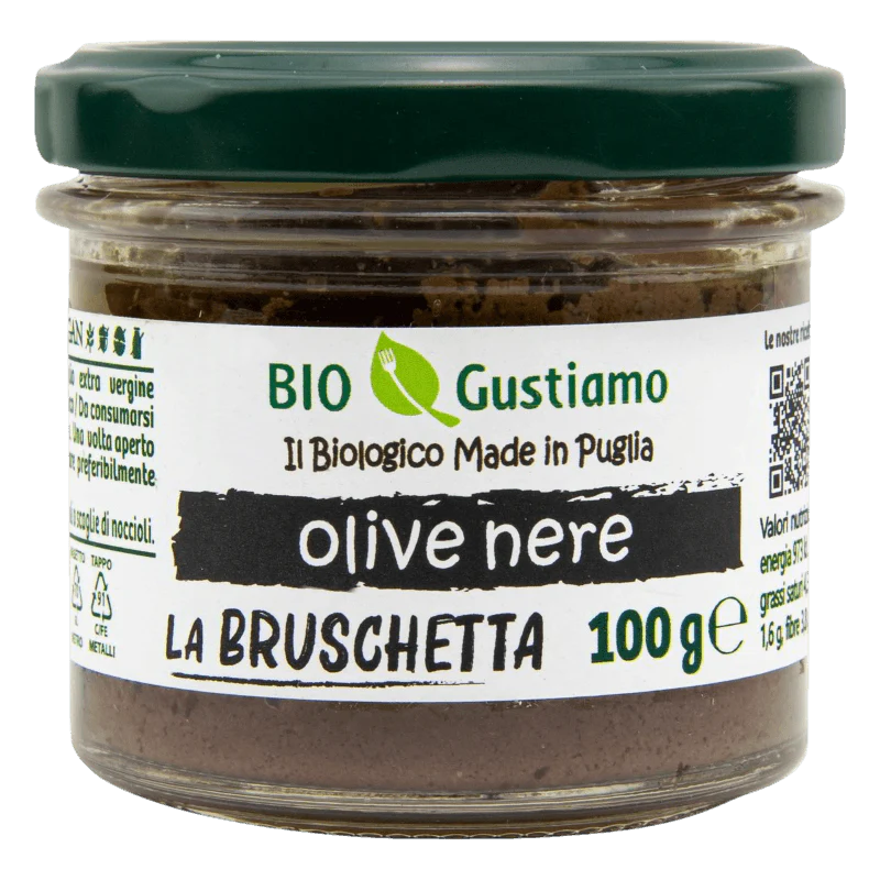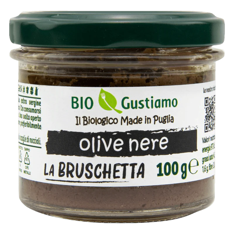 A Bio Gustiamo fekete olivás bruschetta igazi ínyencség, mely magában rejti az olasz konyha varázslatos ízeit.