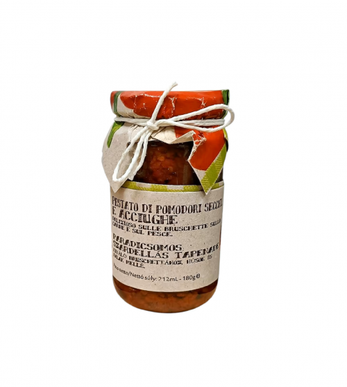 A termék prémium minőségű alapanyagokból készül, mint például az aszalt paradicsom, szardella és friss fűszernövények, melyek garantálják az intenzív ízélményt.