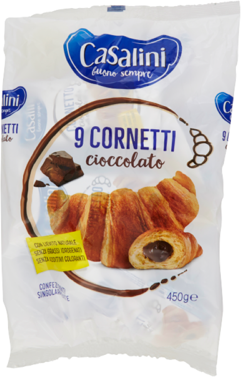 Az édes csokoládé és a puha tészta tökéletes harmóniája szájban olvadó élményt nyújt. A Casalini cornetti ideális választás reggelire vagy délutáni édességként.