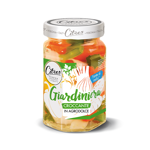 A Citres giardineria croccante zöldségek fenséges ízvilága frissességet és ropogós élvezetet nyújt minden falatban, tökéletes kiegészítője egy könnyed étkezésnek vagy friss salátának.