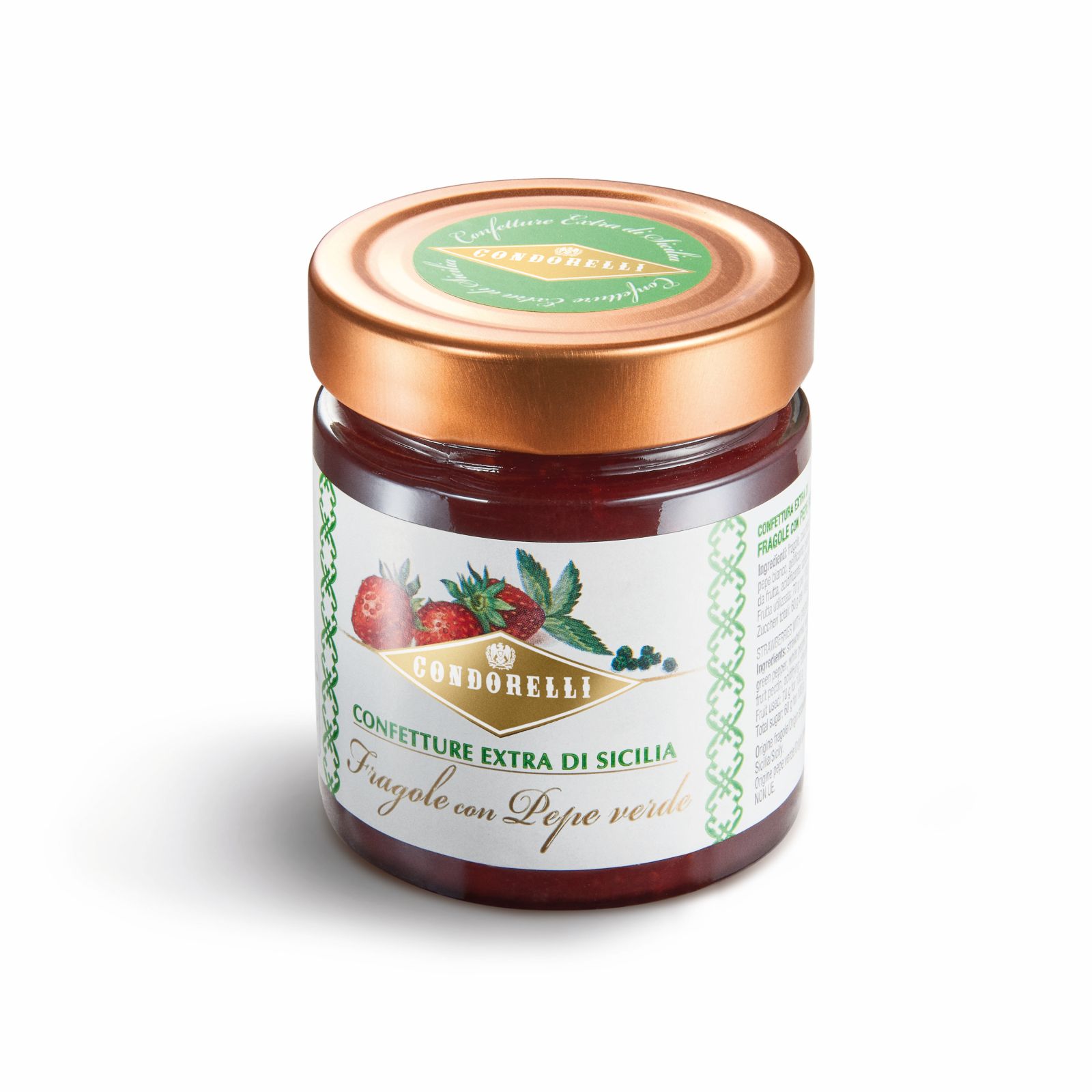 Az Condorelli eperlekvár zöld borssal egy igazi különlegesség, mely tökéletes választás az egyedi ízek kedvelőinek.