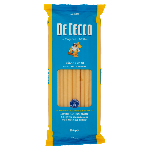 A De Cecco Zitone tészta egy igazi olasz különlegesség, melynek hosszú, tubus alakú formája tökéletesen tartja magán a szószokat és ízeket.