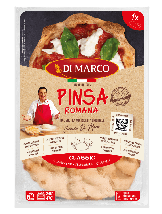 Válogatott lisztek (búza, rizs és szója) keverékéből kovásszal készült tészta, 72 órán át kelesztve, kézzel gyúrva, hogy a Pinsa Romana olyan könnyed és ropogós legyen, amitől el fog ámulni!