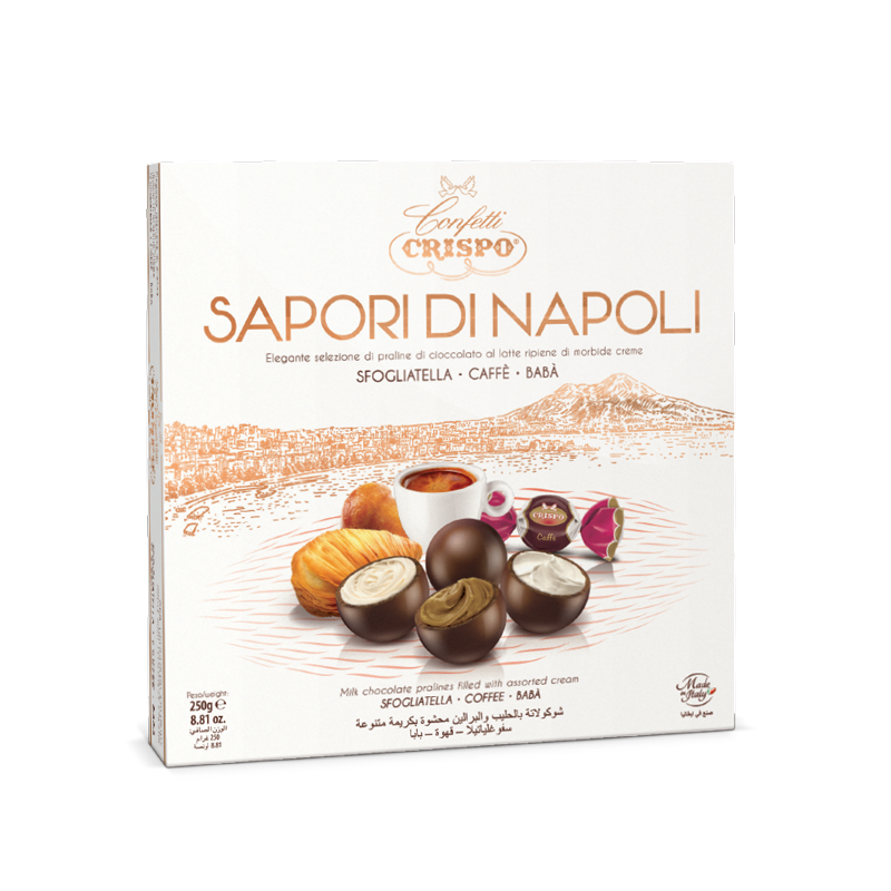 A Crispo Sapori di Napoli praliné egy igazi olasz különlegesség, melyet a legfinomabb alapanyagok felhasználásával készítenek.