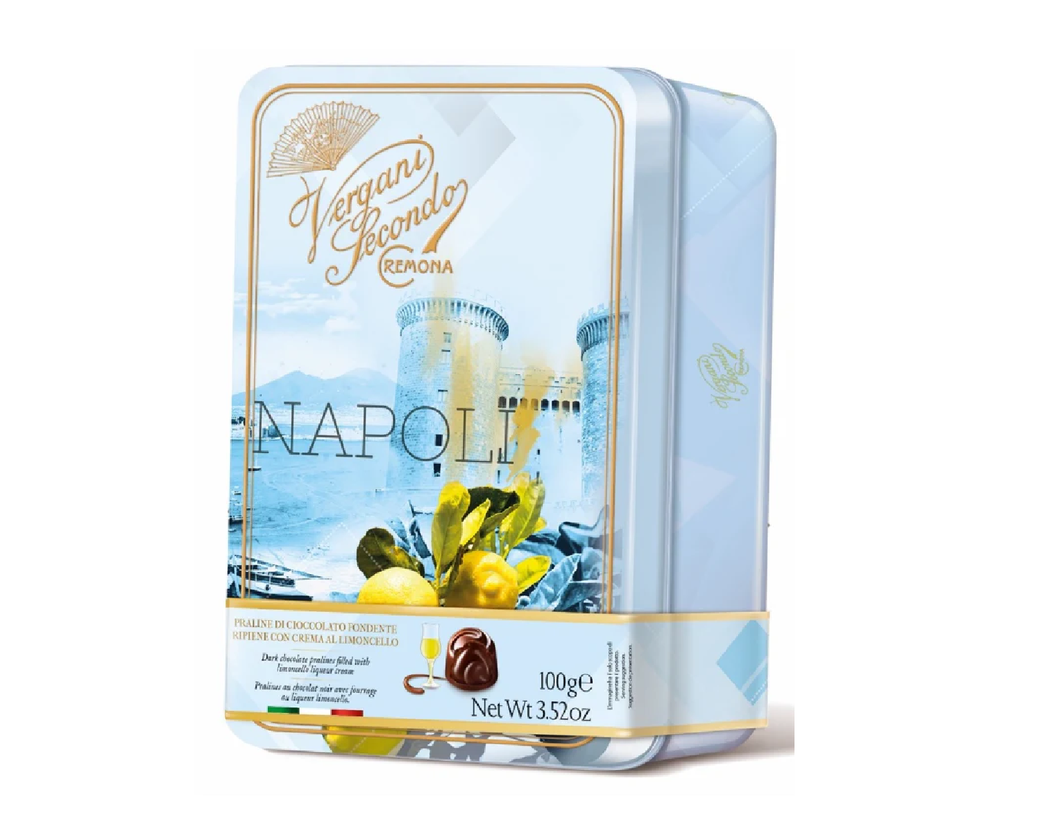 A Vergani Napoli limoncello praliné fém dobozban különleges élményt nyújt az igazi olasz limoncello rajongóinak.