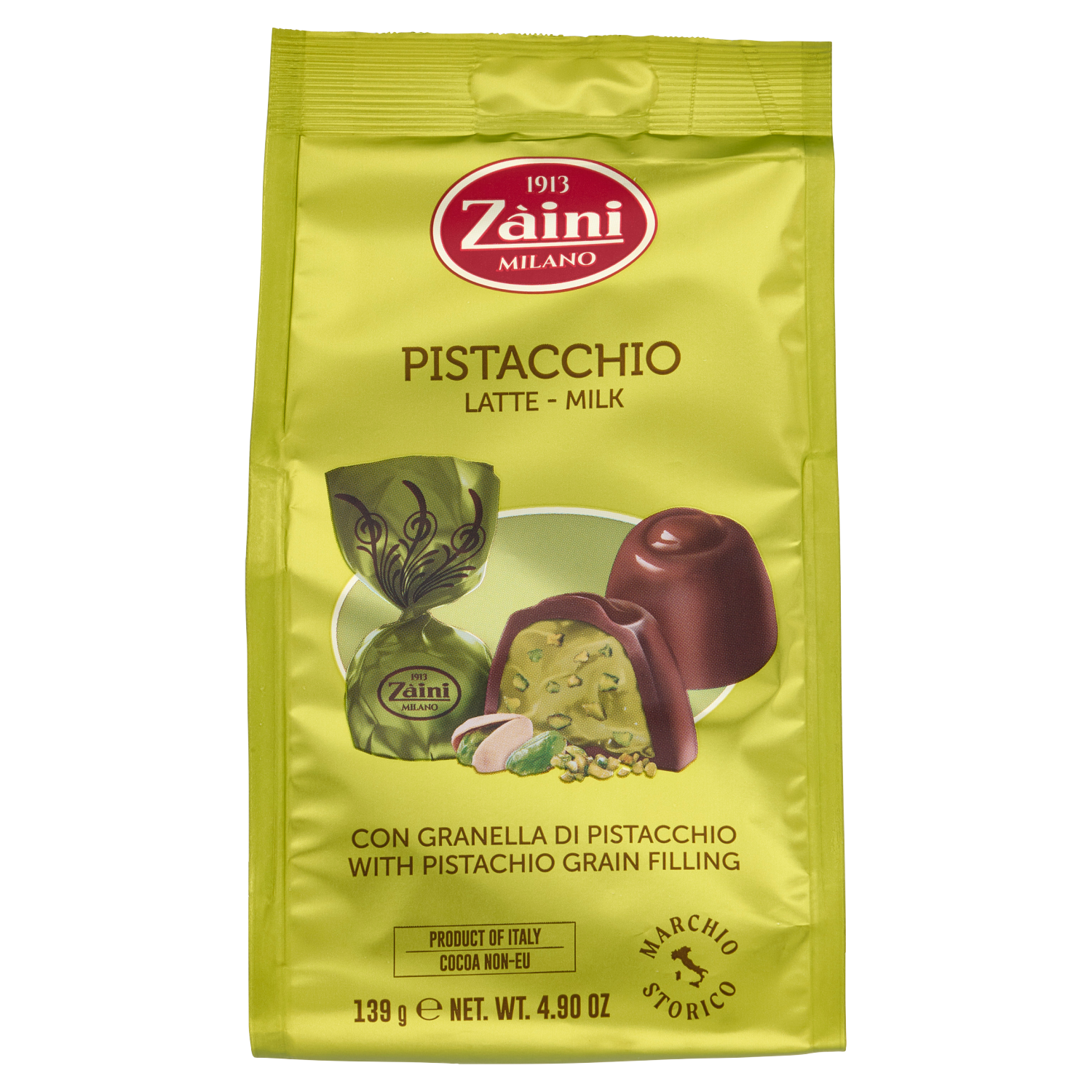 A Zaini pisztáciás praliné tökéletes desszertként szolgál egy romantikus vacsora után, vagy akár kávé mellé is ideális választás.