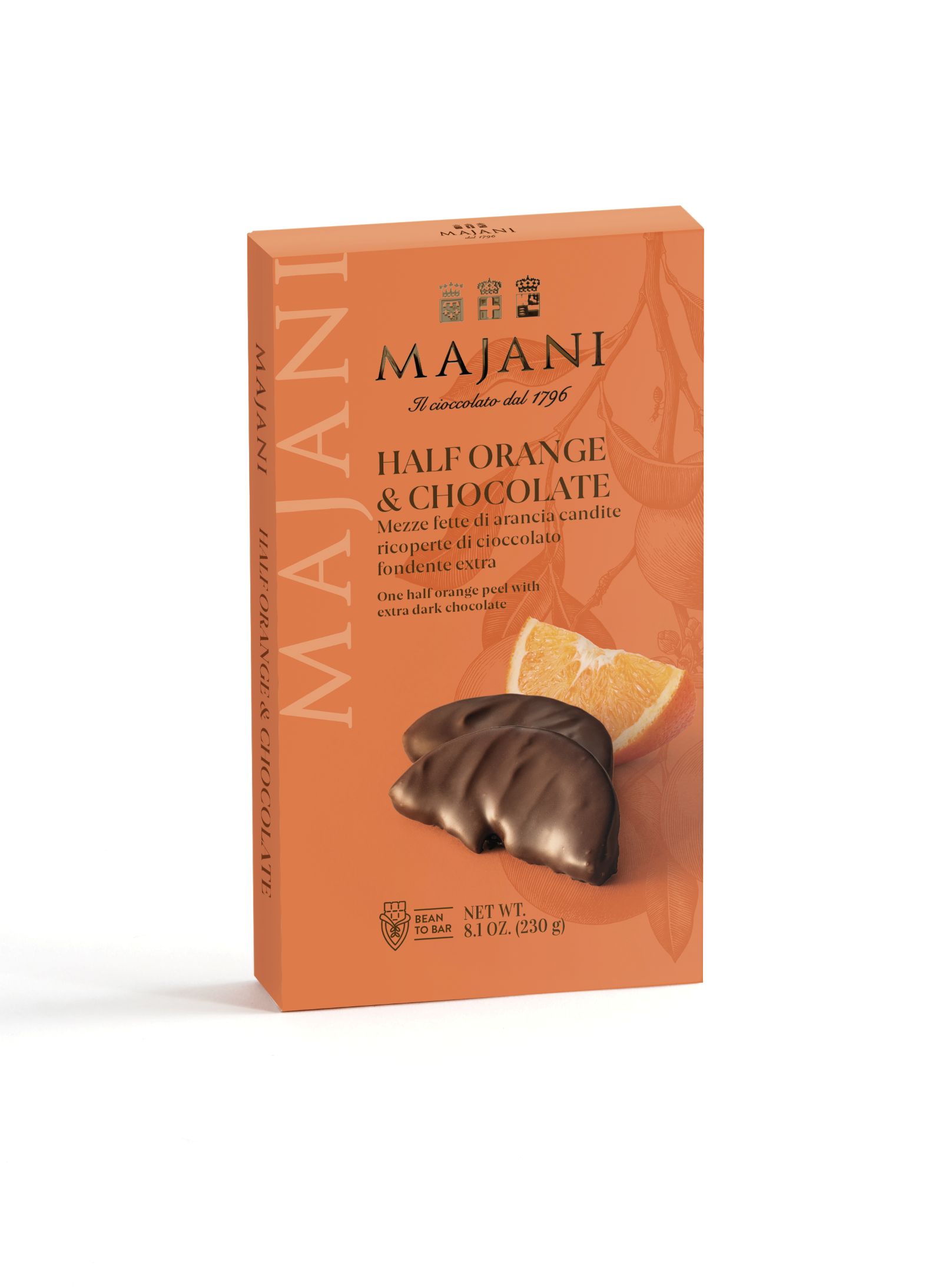 A Majani kandírozott narancsszelet étcsokoládéban egy igazi ínyencség, melyet a gasztronómia szerelmeseinek ajánlunk.