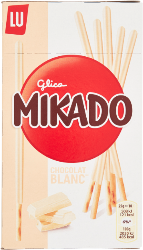 Az édes fehércsokoládés Mikado tökéletes választás egy délutáni kávé mellé vagy desszertként. Kiválóan passzol fehércsokoládés tortához vagy csokoládés süteményekhez.