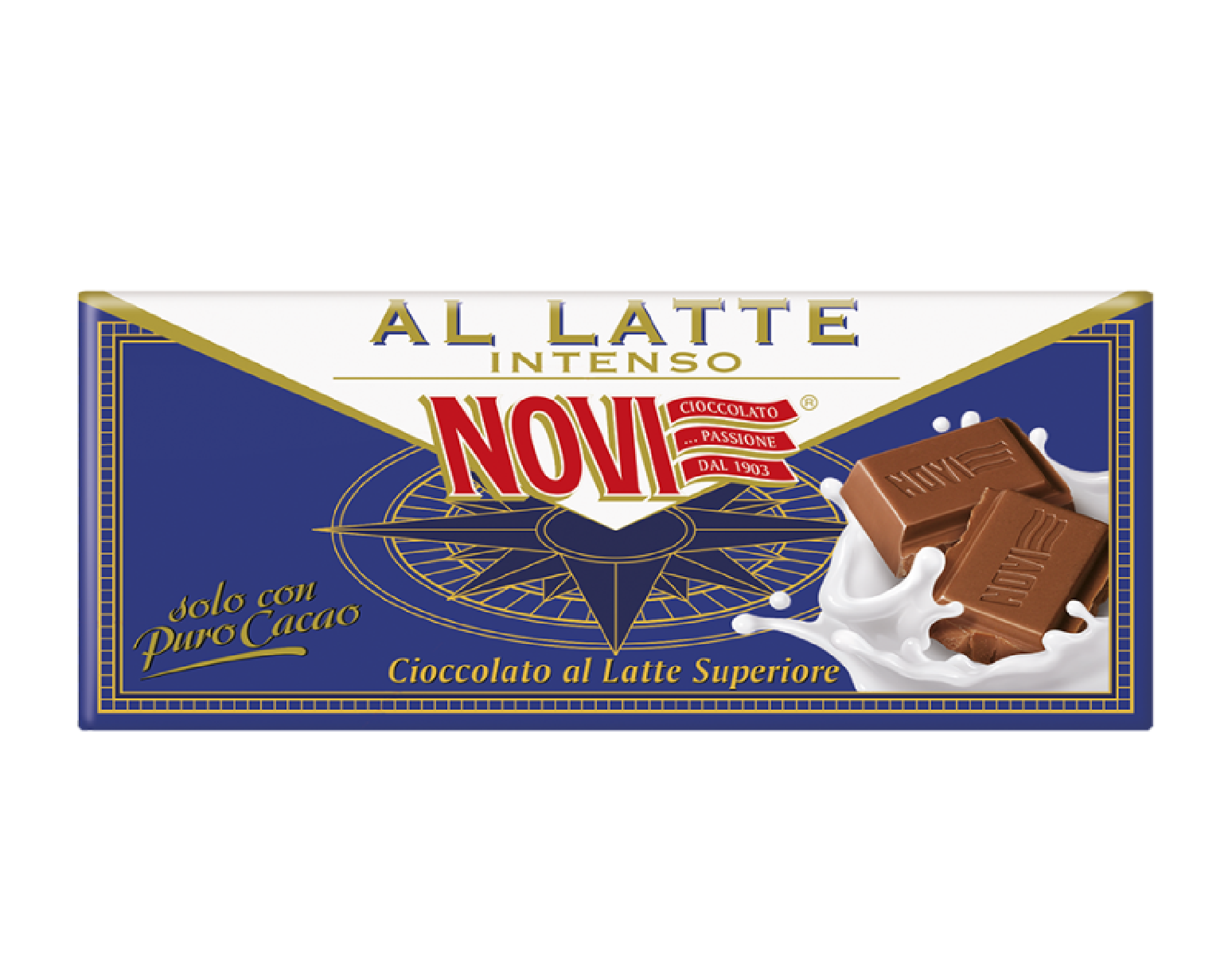 A Novi intenso tejcsokoládé egy intenzív ízvilágú tejcsokoládé, amely magában hordozza az olasz csokoládék tradicionális ízeit és aromáit.