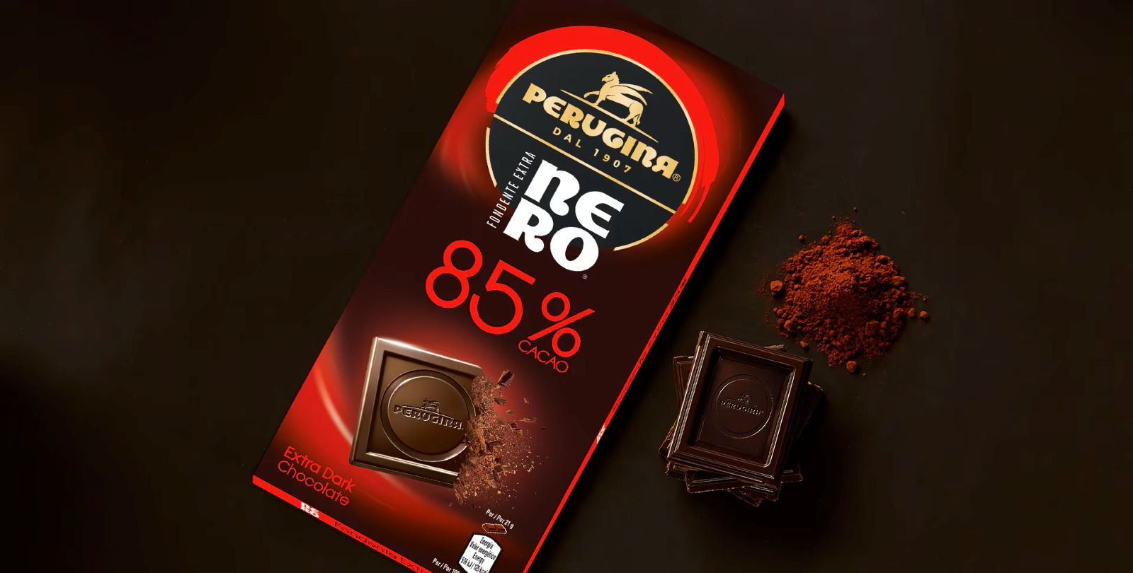 A Perugina Nero 85%-os étcsokoládé a csokoládé szerelmeseinek tökéletes választása, mely Olaszországban, Perugiában készül, és 85%-os kakaótartalmával intenzív ízélményt nyújt.