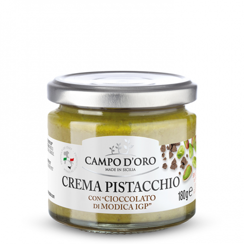 A Campo d'Oro pisztáciakrém modica-i csokoládéval egy egyedülálló olasz delikátesség, mely magában hordozza a pisztácia és modica-i csokoládé ízeit.