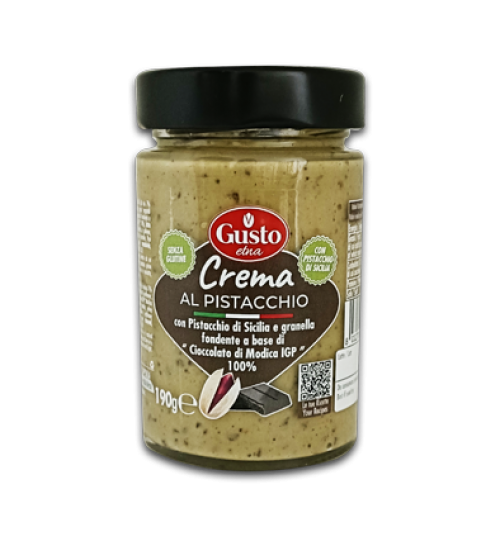 A Etna pisztáciakrém csokoládé darabokkal egy ínycsiklandó desszert, melyben a pisztácia krémes íze tökéletesen harmonizál a csokoládé ropogós darabjaival.