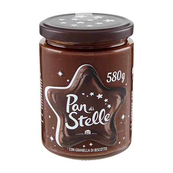 A Pan di Stelle krém igazi remekmű a reggeli szerelmeseinek. Ez az egyedülálló krém a kiváló minőségű olasz mogyorót (12%) és a finom kakaót ötvözi az összetéveszthetetlen extrával: a híres Pan di Stelle keksz finom, ropogós darabjaival. Különleges minőségi jellemző a pálmaolaj tudatos mellőzése – a valódi és felelősségteljes élvezet érdekében.