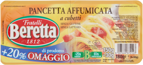 A Beretta pancetta füstölt egy kiváló minőségű, olasz szárazsonkaféle, mely tökéletes választás az igazi gasztronómiai élmények kedvelőinek.