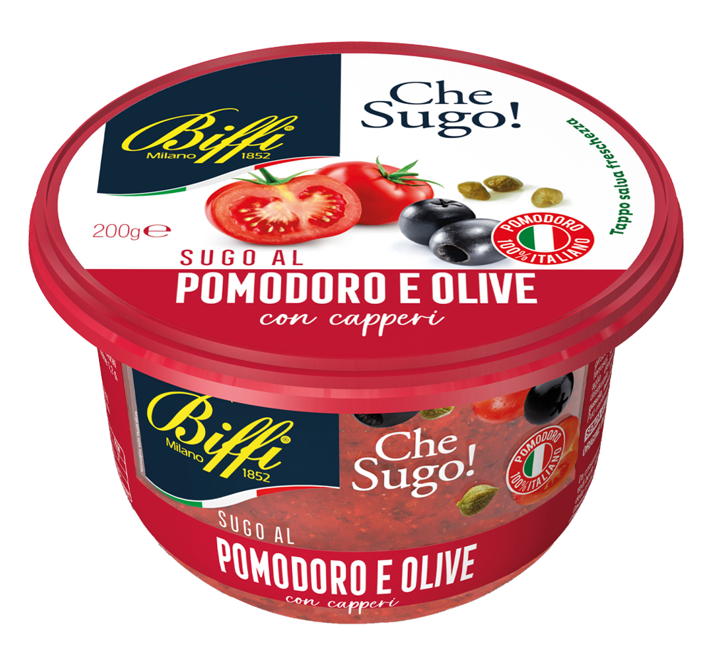A Biffi olívás-kapris paradicsomszósz gazdag és intenzív ízélményt nyújt, mely tökéletesen párosul a tésztákkal, húsételekkel vagy akár pizza feltétként.