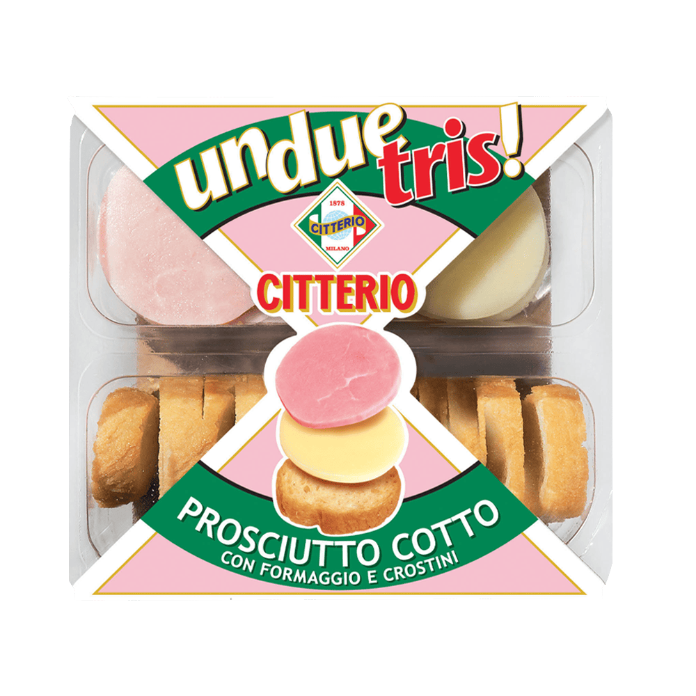 Sok szelet finom főtt sonka és sajt ropogós, lassú kelesztésű, kézzel gyúrt crostinivel. Ideális gyors étkezéshez vagy nassolnivalóhoz.