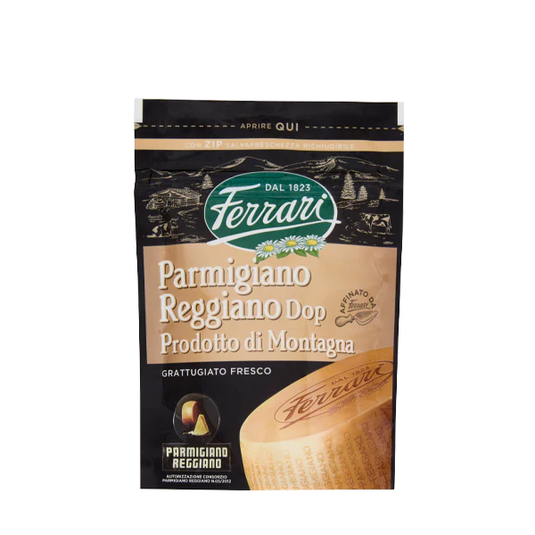 A Ferrari reszelt parmezán ideális választás spagetti carbonara, pizza margherita vagy röszti tetejére. A sajt egyedülálló ízét bármely étel feldobja.