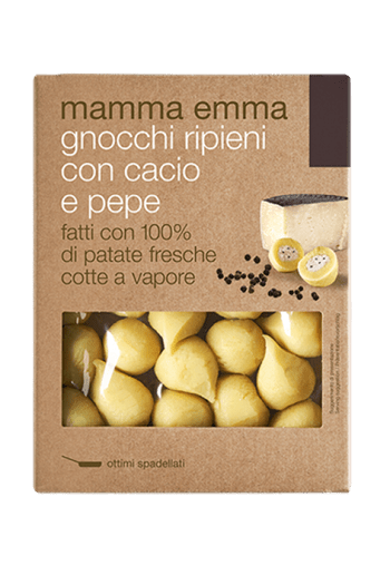 A termék prémium minőségű alapanyagokból készül, mint például a friss gnocchi tészta, ízletes cacio sajt és fűszeres bors, melyek garantálják az autentikus ízélményt.