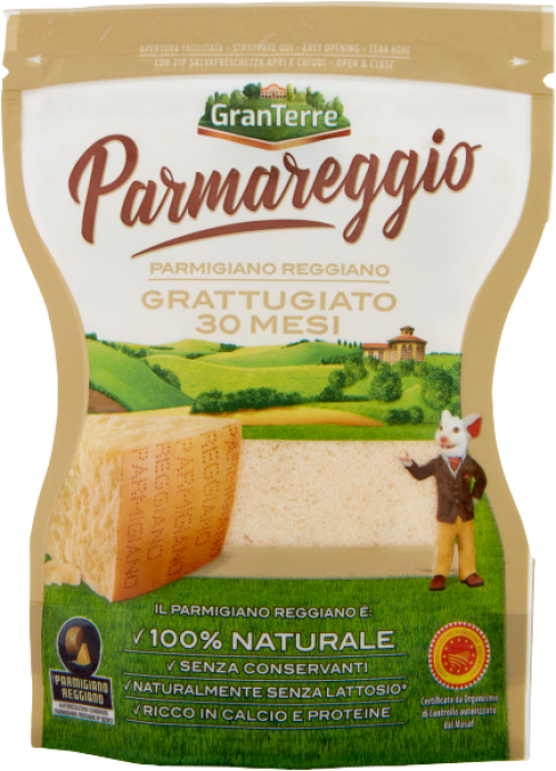 A Parmigiano Reggiano DOP reszelt parmezán sajt a valódi olasz konyha elengedhetetlen része, mely gazdag ízével garantáltan feldobja az ételeket.