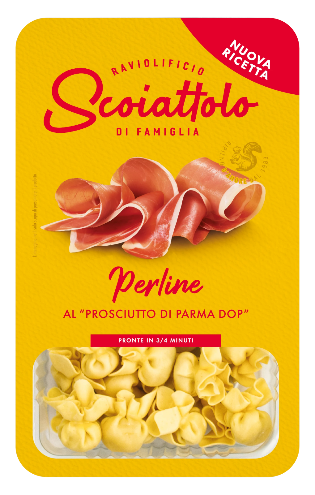 A Scoiattolo Perline al Prosciutto di Parma DOP egy prémium minőségű friss, tojásos tésztából készült töltött tészta, amelyben az olasz gasztronómia egyik legismertebb alapanyaga, a Prosciutto di Parma DOP kap főszerepet. A gondosan válogatott alapanyagoknak köszönhetően a termék ízvilága egyszerre lágy, selymes és enyhén sós, tökéletesen kiegyensúlyozott karakterrel.