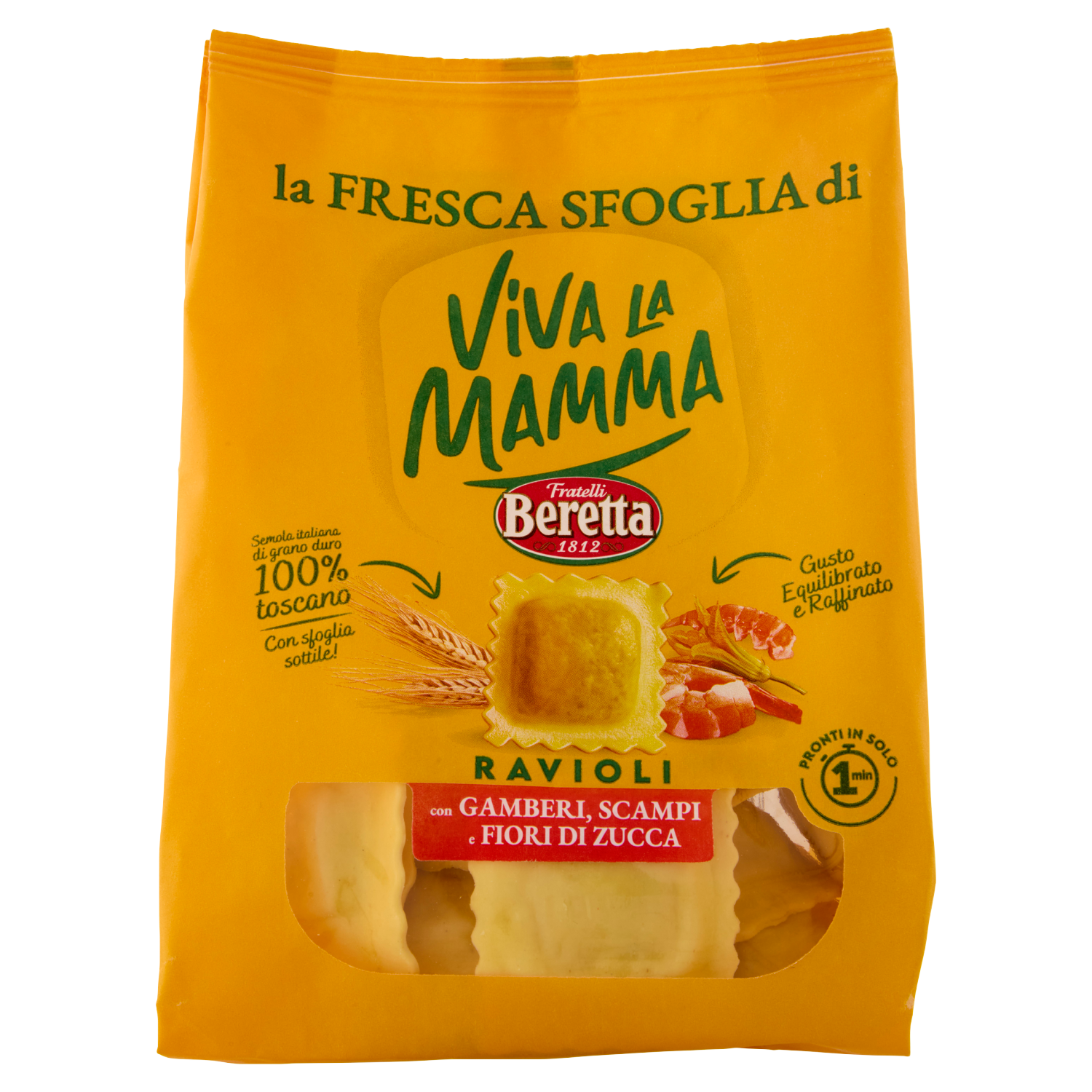A Viva La Mamma ravioli rákos-tökvirágos tészta gazdag és harmonikus ízvilággal rendelkezik, mely minden falatban az olasz konyha szeretetét hordozza.