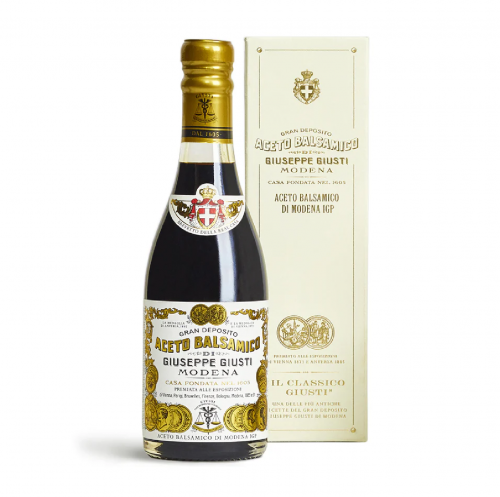 A Giusti balzsamecet 2 arany medál egy luxus kategóriás olasz balzsamecet, amely két arany medállal van díszítve, kivételes ízélményt nyújtva.