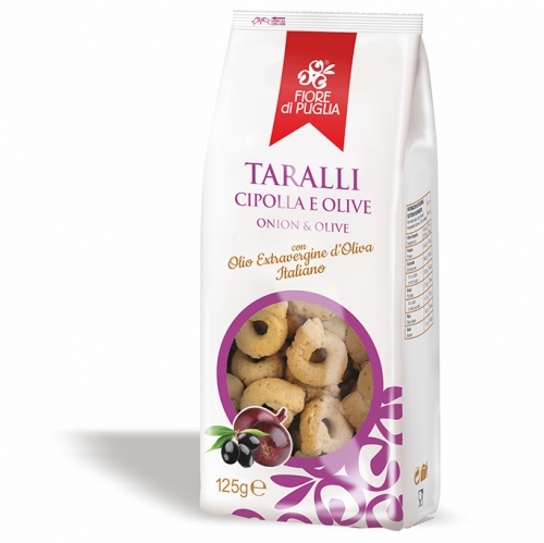 A Fiore taralli hagymás ideális kiegészítője egy olasz aperitifnek vagy ízletes snack egymagában is. Remekül párosítható egy pohár jó borral vagy akár egy friss salátával.