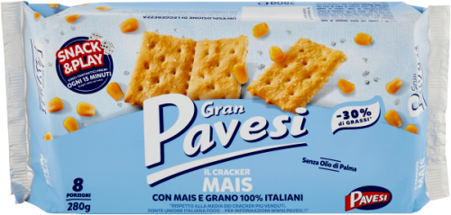 A Gran Pavesi kukoricás kréker egy ízletes és ropogós snack, mely tökéletes választás minden snack kedvelő számára.