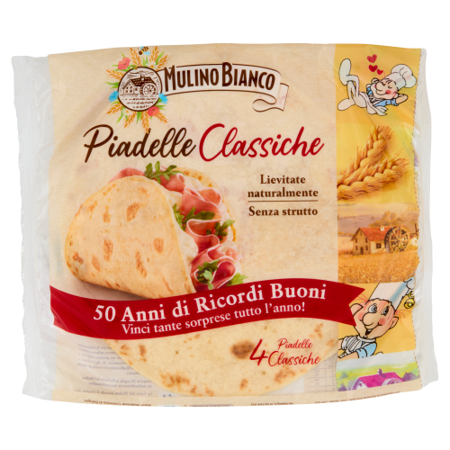 A Mulino Bianco Piadella Classic egy igazi olasz klasszikus, mely az autentikus Piadina recept alapján készül.