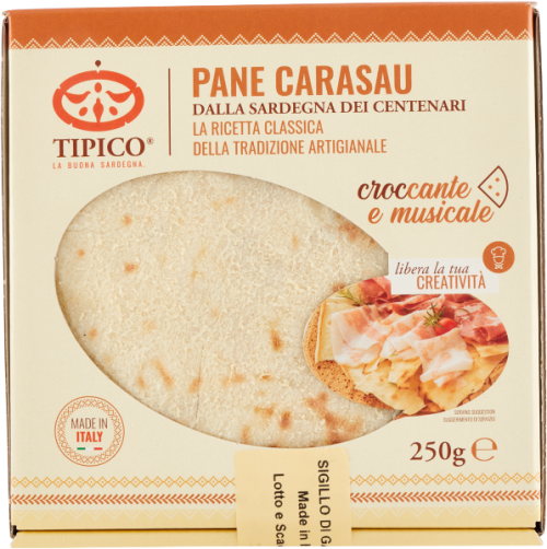 A Tipico pane carasau szárd kenyér ideális kísérője a mediterrán fogásoknak, tökéletes választás a klasszikus bruschetta, caprese saláta vagy olasz sonkás tál elkészítéséhez.