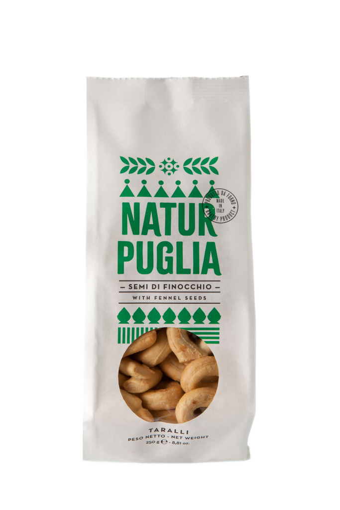 A Naturpuglia taralli édesköményes egyedi ízvilágú olasz ropogtatnivaló, mely tökéletes választás a gasztronómiai kalandok kedvelőinek.