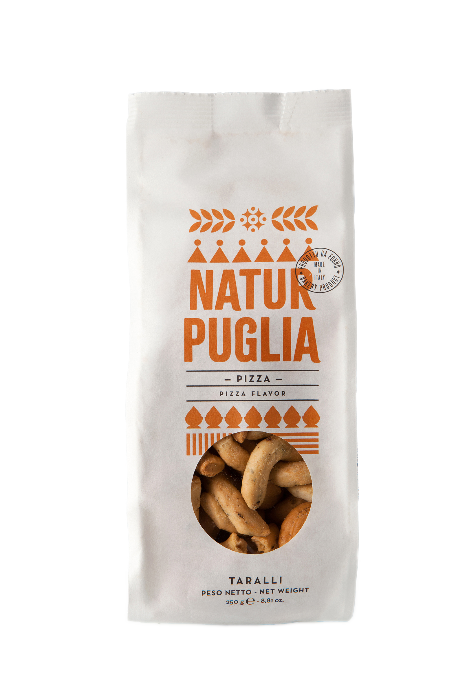 A Naturpuglia taralli pizzás a hagyományos olasz ízek szerelmeseinek tökéletes választása, autentikus recept alapján készül.