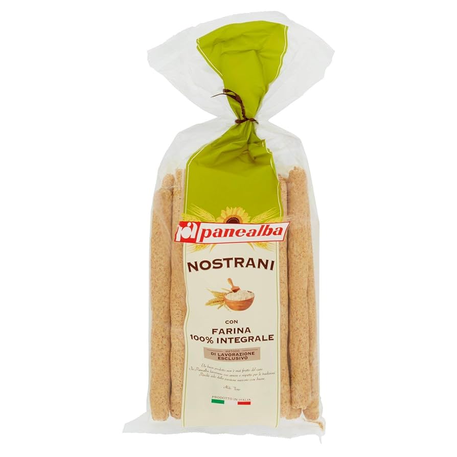 A Panealba Nostrani teljeskiőrlésű grissini Olaszország Piemonte régiójából érkezik, és 200g-os csomagolásban kapható. E kiváló minőségű ropogtatnivaló finom, tradicionális olasz ízvilágot kínál, ideális választás azok számára, akik szeretik az autentikus olasz ízeket. A grissini teljeskiőrlésű változata egészséges és tápláló snack lehetőséget biztosít az egész családnak.