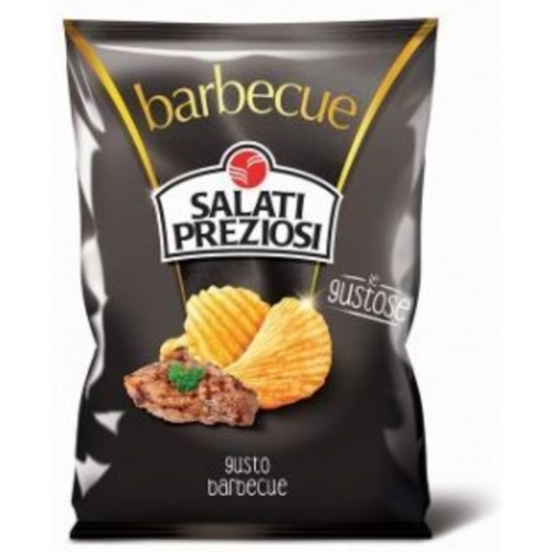 A Salati Preziosi barbecue chips egy ínycsiklandó ropogtatnivaló, mely kiváló választás minden barbecue rajongó számára.