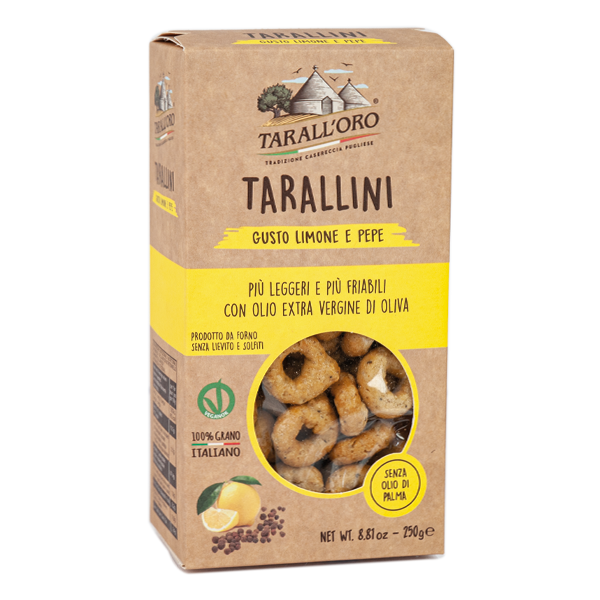 A Taralloro tarallini citromos-borsos egy igazi ízexpedíció az olasz gasztronómia világába. Friss, citromos ízével és pikáns borsos aromájával lenyűgözi az ínyenceket.