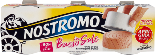 A Nostromo tonhal olivaolajban különleges készítmény, mely 80%-kal csökkentett sótartalommal rendelkezik, és három darab 65g-os adagot tartalmaz.