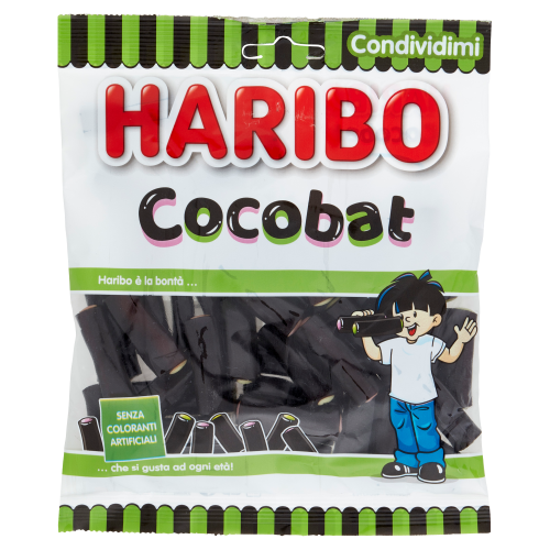 A Haribo gumicukor Cocobat egy örök kedvenc, mely a gyerekek és felnőttek körében is népszerű. Az édes ízvilág és puha állag garantáltan elvarázsolja az ínyenceket.