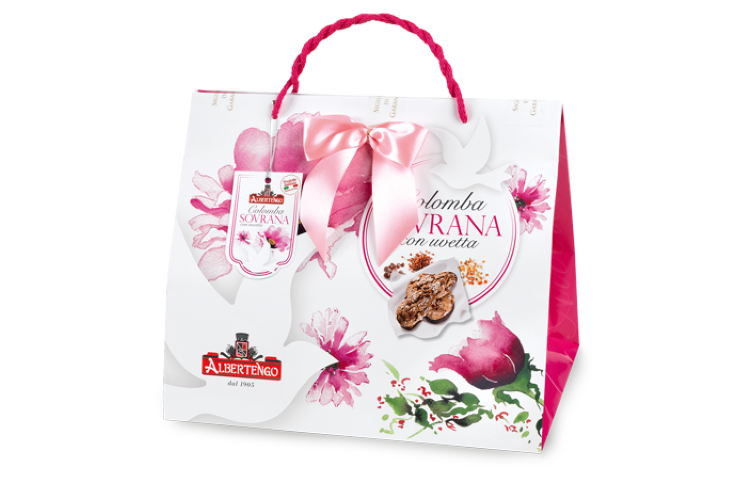 A Albertengo colomba csokoládés dísztasakban egy exkluzív olasz desszert, mely igazi ízorgia minden csokoládé kedvelő számára.
