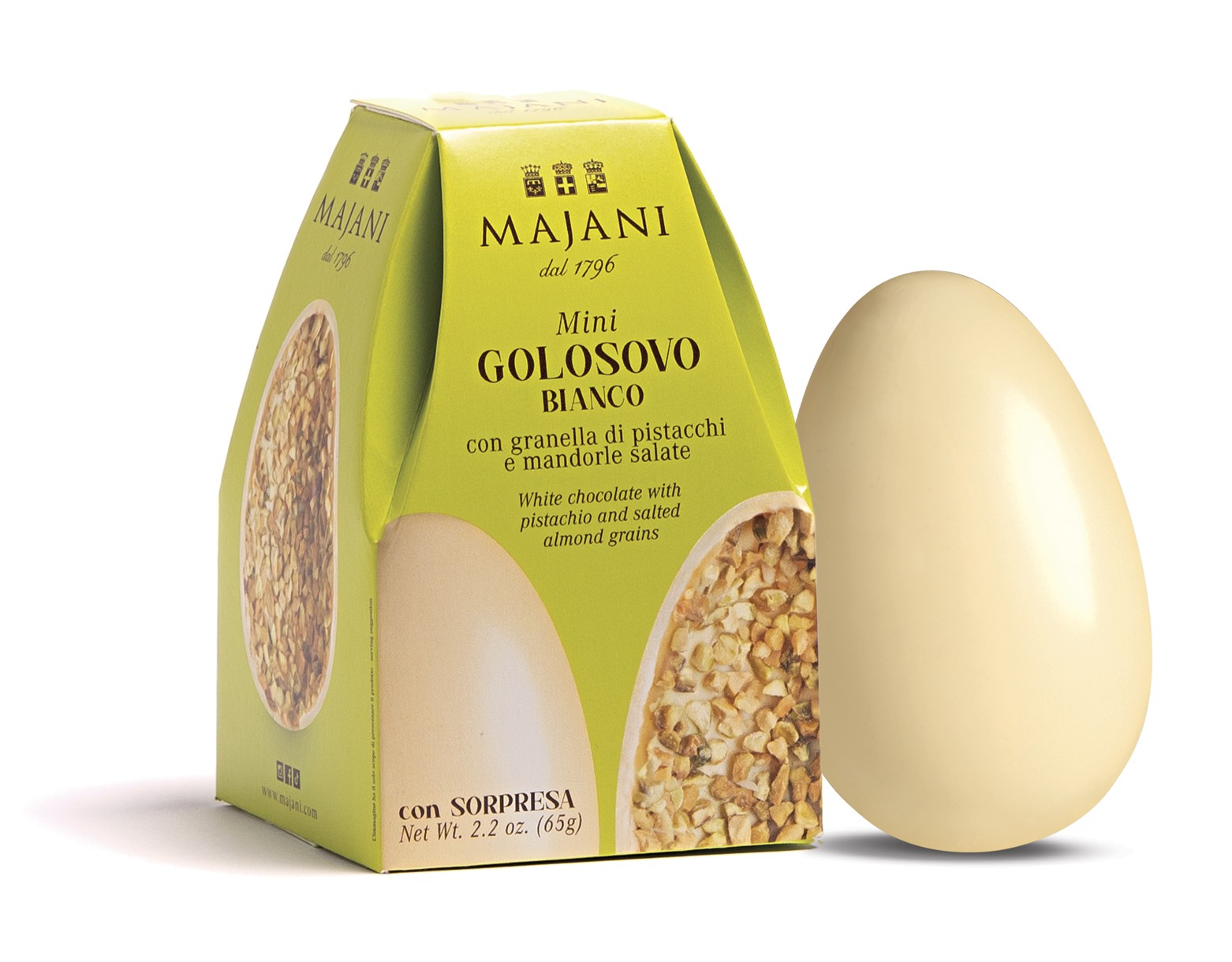 Majani pisztáciás-sós mandulás fehér csokoládé tojás 65g