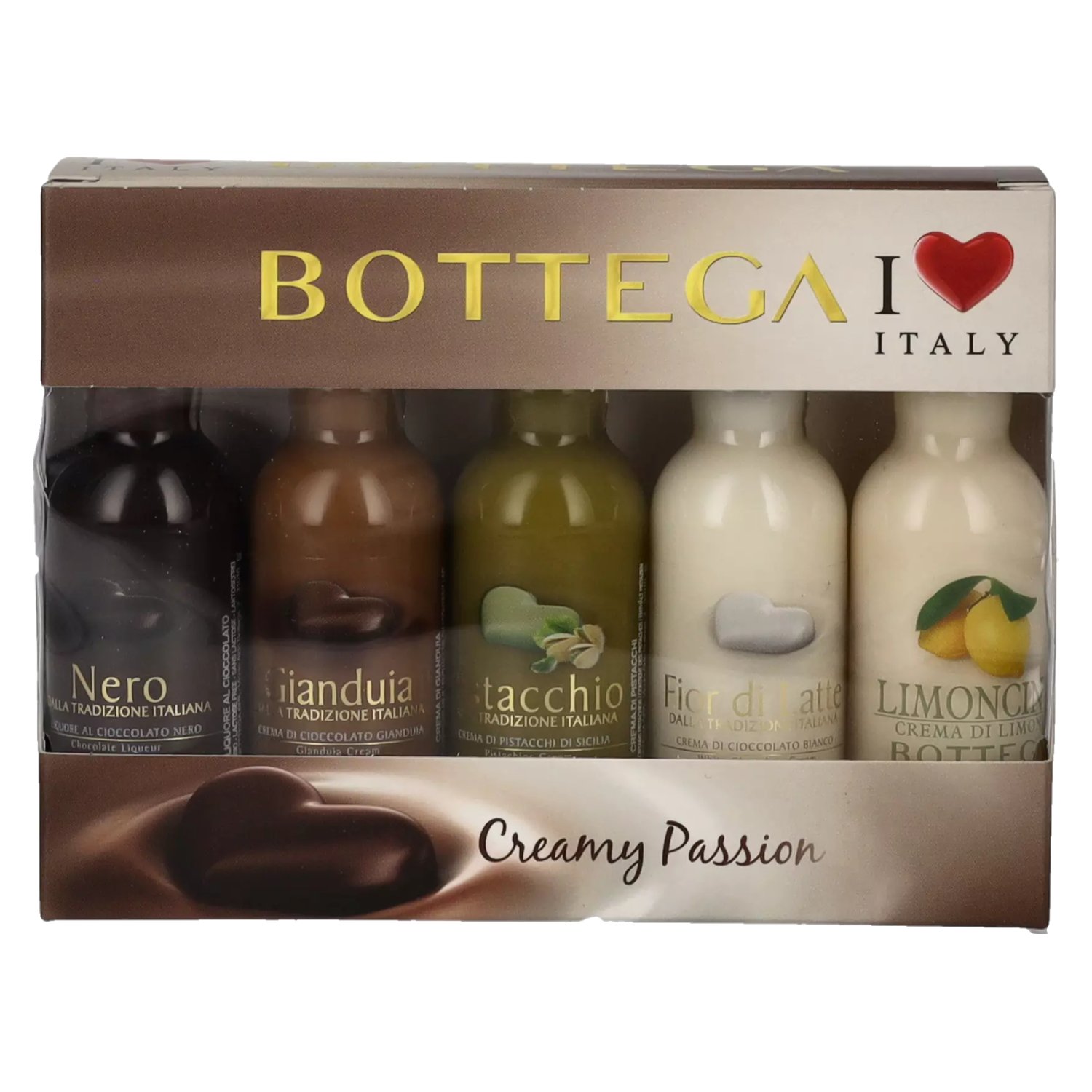A Bottega mini krémlikőr szett 5x0,03l egy luxus kiszerelésű likőröket tartalmazó csomag, mely ideális választás az exkluzív ínyencek számára.