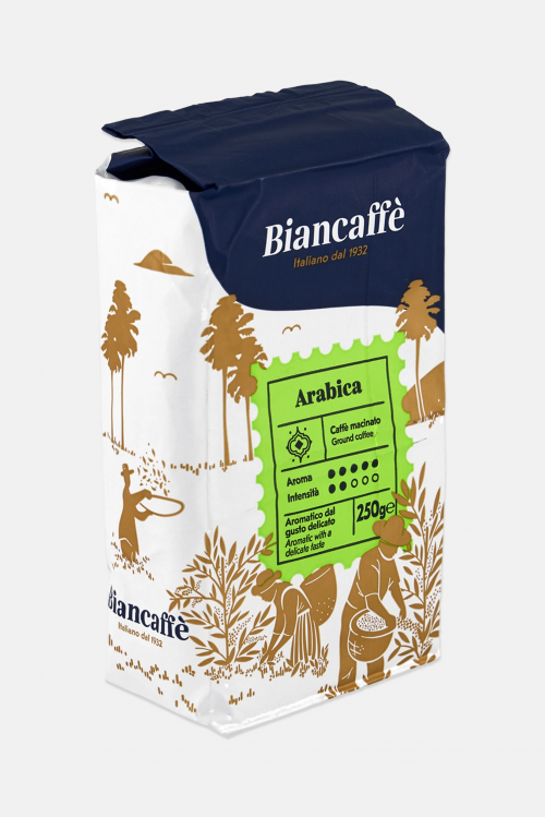 A Biancaffé 100% arabica õrölt kávé kiváló minőségű olasz kávé, melyet a legfinomabb arabica kávébabokból válogattak össze.